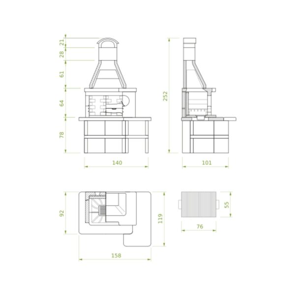| Καύσιμα | Ξύλο ή κάρβουνο |